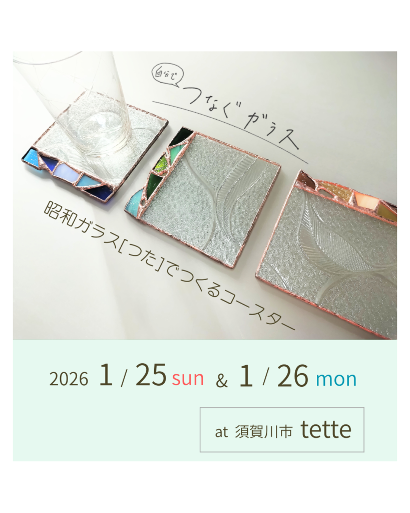 つた模様の昭和ガラスを使ってコースターを作ります。